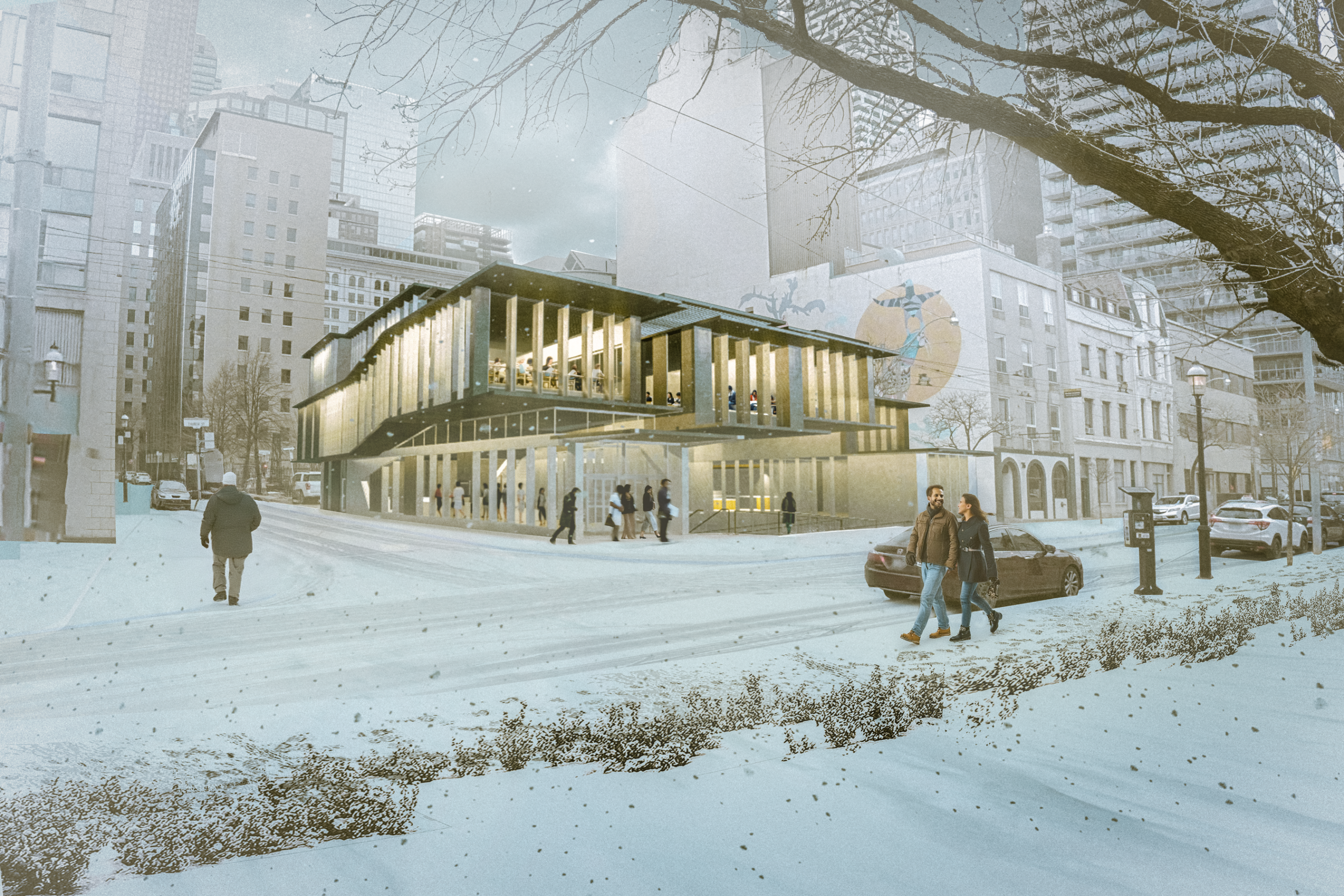 A bold reimagining of Toronto’s transit heritage, this project transforms an underutilized site into a cultural hub. Inspired by the city’s historical railways, streetcars, and subways, the library’s angular U-shape represents the convergence of transit routes. A sunken social ramp invites visitors into a dynamic space where stories and knowledge flow like the city’s past. Blending modern functionality with a tribute to Toronto’s evolution, it offers a vibrant gathering space for discovery, reflection, and community engagement, setting a new standard for creative infill design while honoring the city’s legacy.